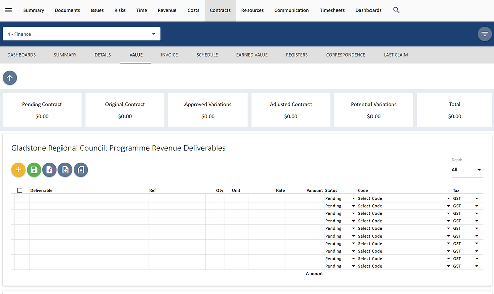 This setup creates a matrix where the contract sits at the top and pulls financial data from all the linked child projects/activities.