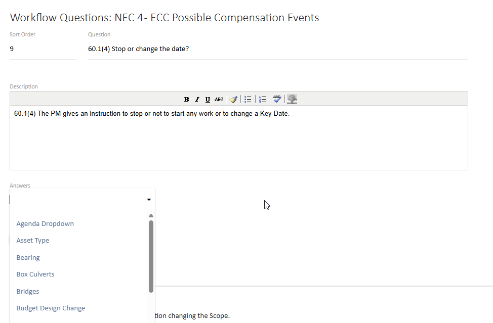 This functionality is particularly valuable for projects operating under structured contractual frameworks such as NEC or JCT contracts, where the correct procedure must be followed depending on the specific situation.